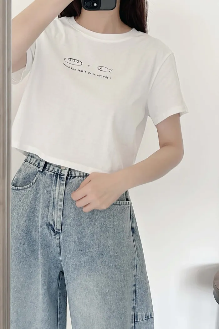 涼感棉/微短版/小魚麵包tee